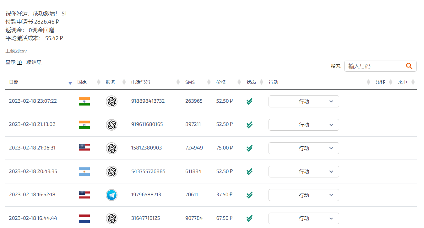 下面接着进行ChatGPT注册,在SMS-Activate平台上,选择一个用于注册ChatGPT的号码,然后在ChatGPT手机验证页面输入该号码后,在SMS-Activate中等待验证码短信。