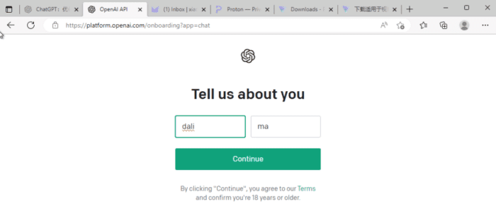使用微软帐户注册成功后,设置一个ChatGPT的用户名称。