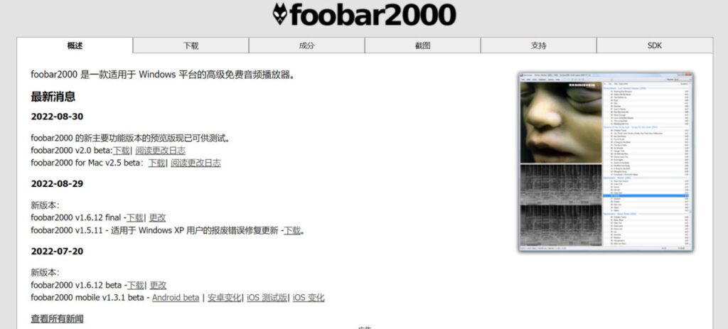 foobar2000 v2.0 beta:下载| 阅读更改日志