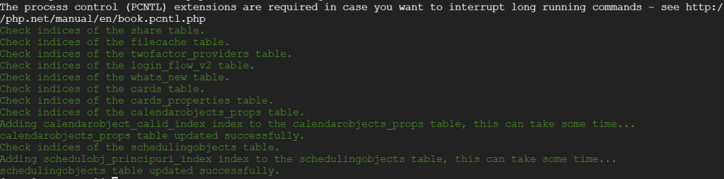 cd /wwwroot/nextcloud sudo -u www php occ db:convert-filecache-bigint sudo -u www php occ db:add-missing-indices