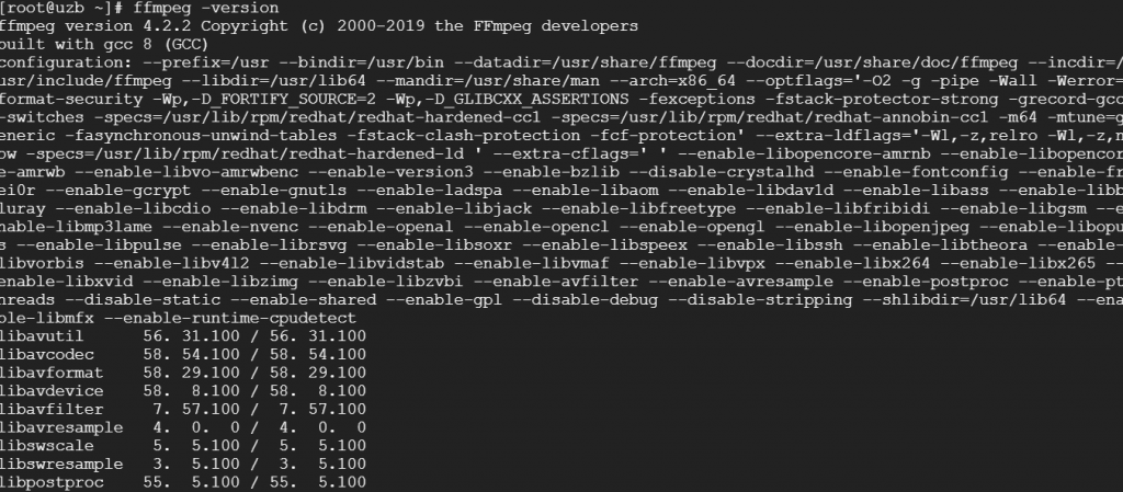 使用以下命令检查RHEL / CentOS系统上安装的FFmpeg版本。