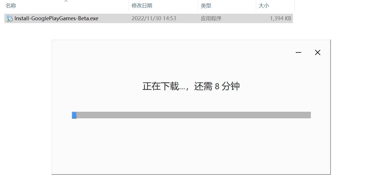 在线安装 Google Play 游戏 ,网络必须保持畅通,就像安装Google浏览器一样。耐心等待,电脑正在下载安装所需的文件。
