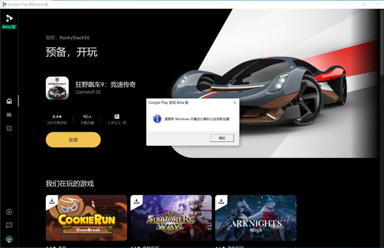 在电脑上安装 Google Play 游戏 注意事项