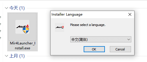 下载完毕后,双击图标,进行安装,安装语言下拉选择中文(简体),点击ok进行安装。