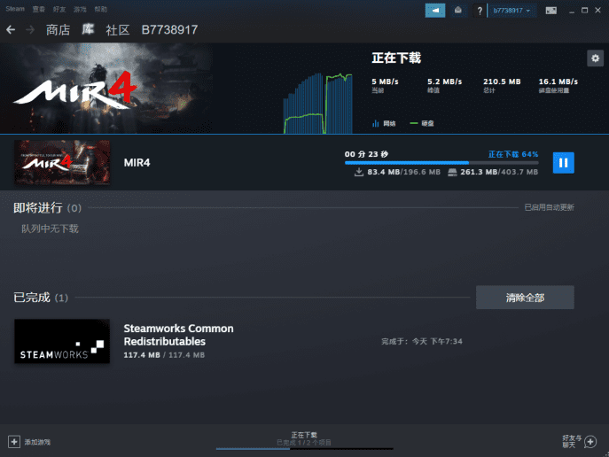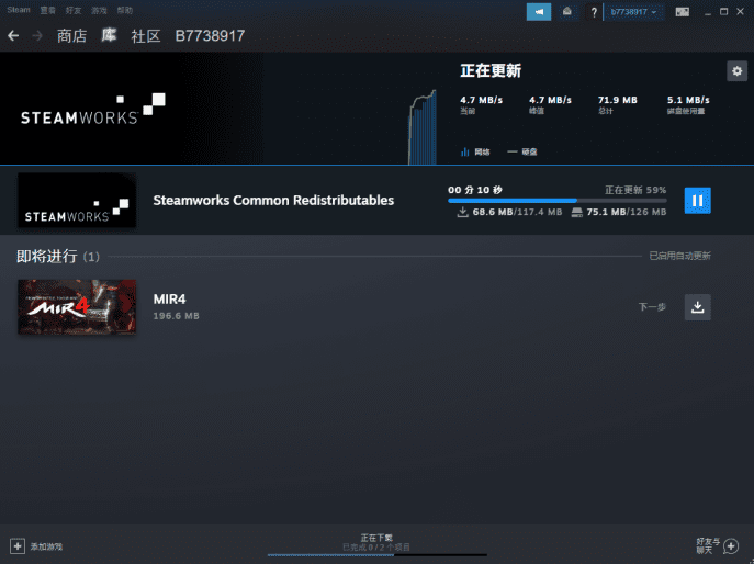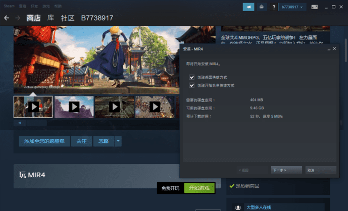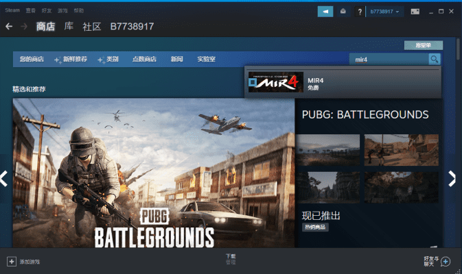 下载安装steam后,会进行最新版本的steam更新,更新完毕后登录STEAM,在商店中搜索mir4,点击MIR4进行游戏安装。