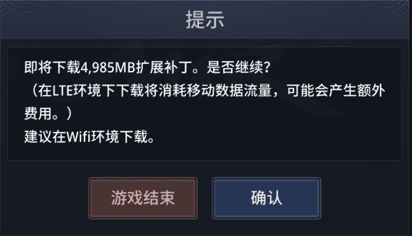 点击开始游戏后,进行游戏扩展补丁下载,大约5G大小。