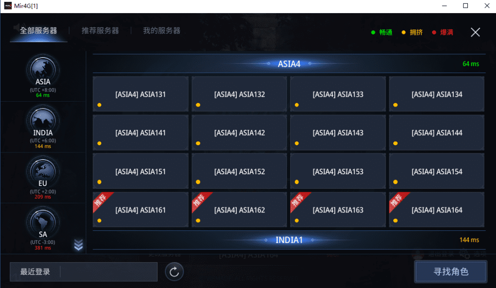 例如选择ASIA164区,截止到2021年11月18日,亚洲区已经开到ASIA7-254区。