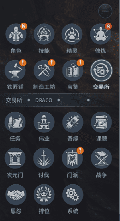 在游戏中点击右上角的加号,打开菜单,点击交易所,然后在点击DRACO,注意只有你满40级后,才会有DRACO选项。