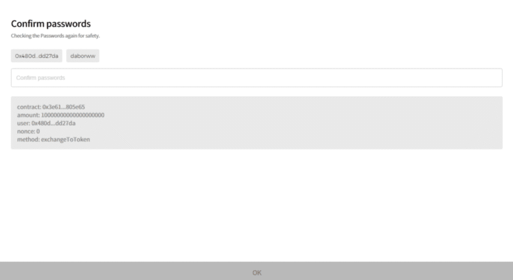 注册成功后点击OK,之后会生成一个区块链的钱包地址。Wemix Wallet已经注册成功了,接下来开始冶炼黑铁矿石,兑换DRACO。