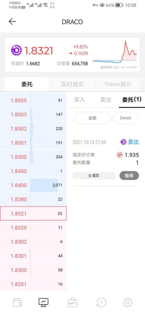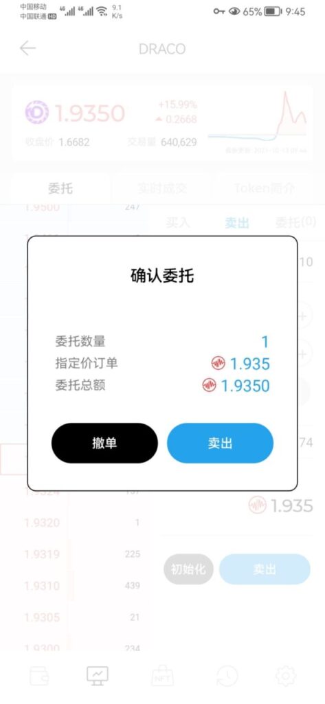 确认密码之后,等待委托完成交易就可以了。如果你的卖出价格高于现价的话,会一直挂单,直到价格满足卖出价格。
