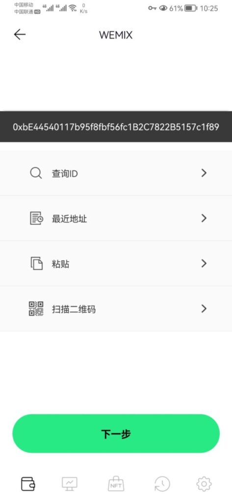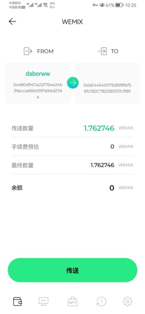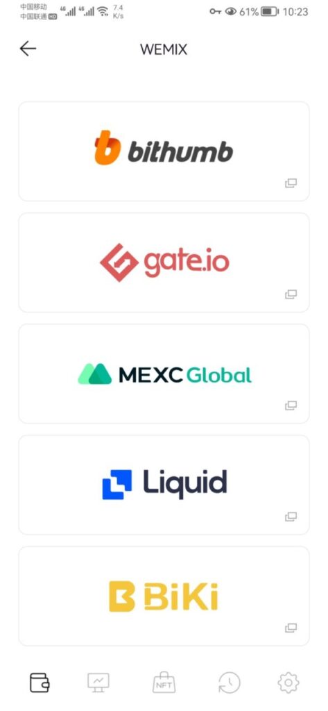 钱包中已经成功的兑换成了WEMIX,下一步就是将钱包中的WEMIX发送到交易所。目前有几家上线WEMIX游戏代币的交易所。