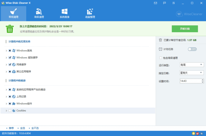 如果条件允许的话,可以把不常用的软件卸载后重新安装在D盘等其他盘,像微信、QQ、WPS等这类软件不要装在C盘里面。下面介绍这款软件名字叫 Wise Disk Cleaner,Wise Disk Cleaner是一款简单的电脑硬盘清理软件,可以识别电脑里的多种文件以及缓存文件等。