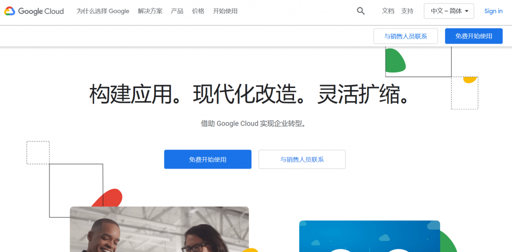 切换成中文后,会进入免费开始使用谷歌云的界面。