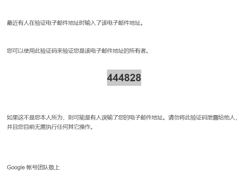 打开邮件你会发现有一个六位数字的谷歌验证码。