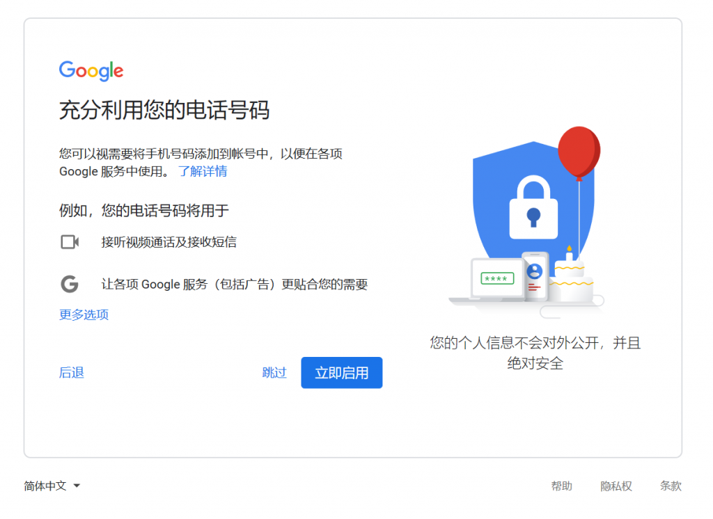 点击立即启用后还有一个隐私权及条款的选项,把条款一直拖到最后,点击我同意,恭喜你,你的Google账户已经注册成功了!