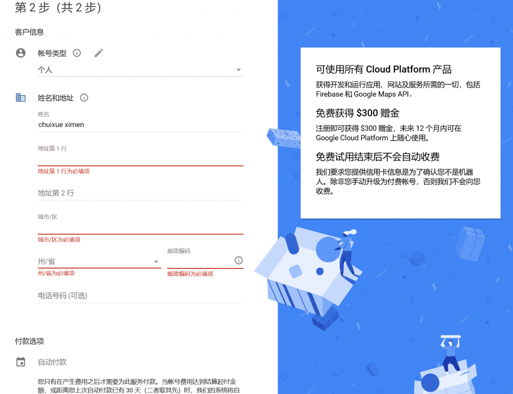 你需要一张信用卡,还要是外币的信用卡,也就是说双币种的信用卡,这个国内可以很多银行免费申请到。要支持VISA或MasterCard(万事达),这样谷歌才可以完成支付服务。不过请放心,谷歌会扣除1美元后再原路返回给信用卡,目的是确认你是否是信用卡真正的持有者,也为了方便日后续费,当然对免费用户来说,续费是不太可能了。一张信用卡只能注册一个谷歌云服务,想要更多台谷歌云的服务器的话,可以使用多张双币种信用卡注册。