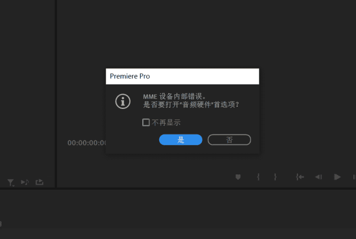 在初次安装Premiere Pro时,经常会遇到“MME设备内部错误”的报错窗口。MME 设备内部错误。是否要打开“音频硬件”首选项?如果不修正MME设备内部错误的话,在使用Premiere编辑视频的时候,用其他播放器播放正常的视频会没有声音。
