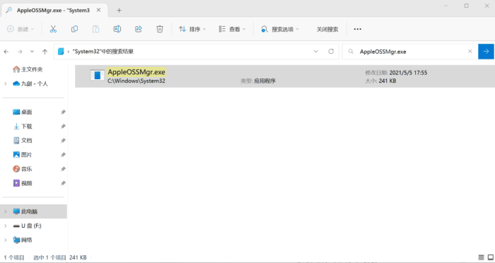 接下来,打开电脑C盘,找到C:/windows/system32/AppleOSSMgr.exe文件。将AppleOSSMgr.exe文件删除。