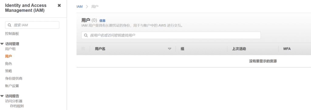 打开IAM界面,创建一个CloudFront用户,随后需要配置WordPress网站使用该用户来访问CloudFront服务。