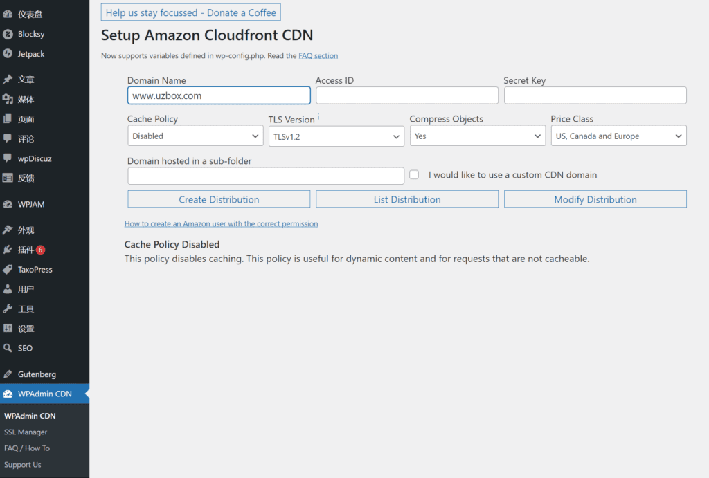 AWS上的CDN配置已经完成了,接下来登录到你的WordPress后台上,进行CDN插件安装。