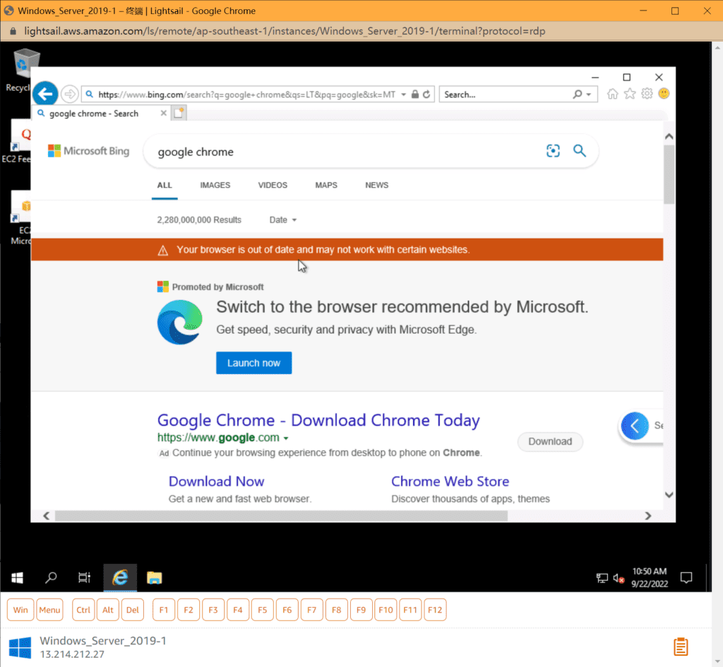 亚马逊云科技的远程云桌面已经创建完毕了,接下来们可以把它当成自家的电脑来操作,例如首先下载一个浏览器。