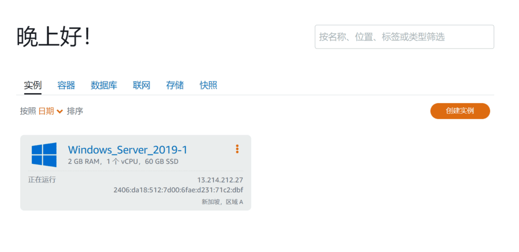 实例创建完毕后,图标会变成蓝色,实例显示“正在运行”则表示已经配置完成。。