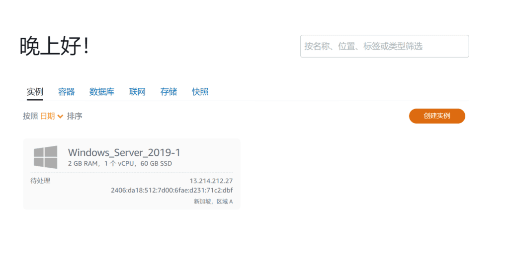 实例状态为“待处理”表示正在为您创建Lightsail实例。