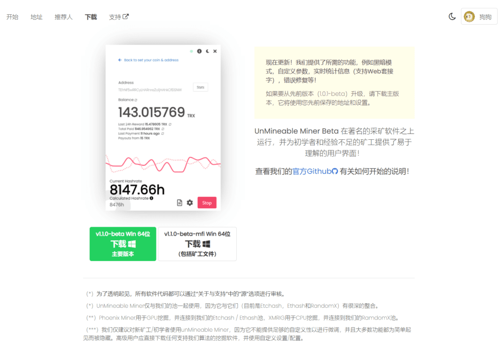 建议新矿工/初学者使用unMineable Miner挖矿工具,因为它的使用操作都极为简单。高级用户可以直接下载任何支持我们算法的挖掘软件。