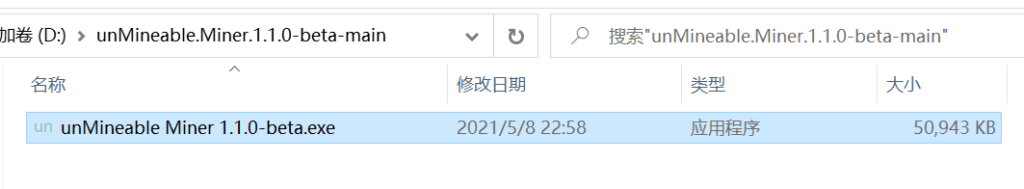 点击下载unMineable_Miner_1.1.0-beta-packed主版本挖矿软件,下载后在目录中解压缩。打开之后需要进行矿机配置。