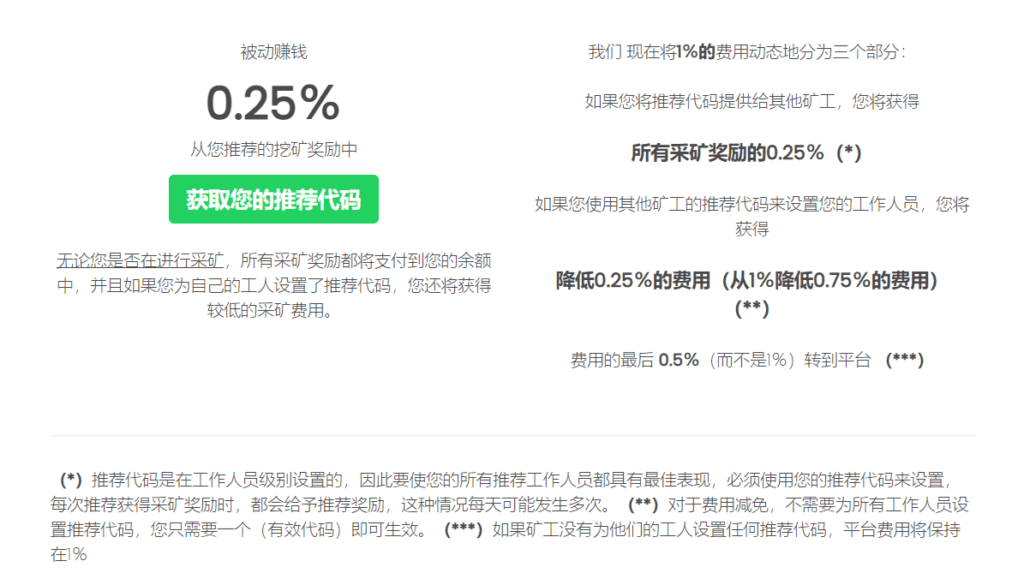 你也可以在网站上获取您的推荐代码,把代码输入到你的矿机当中,当然0.25%的手续费是微乎其微的。