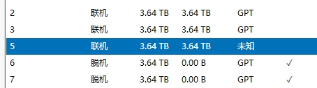 重置磁盘后分区格式显示是未知的,这里需要初始化一下磁盘。