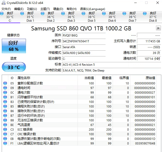 然后下载CrystalDiskInfo磁盘工具,查看当前磁盘的健康情况。点击下载CrystalDiskInfo