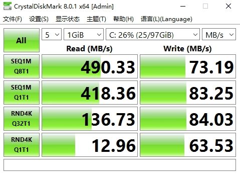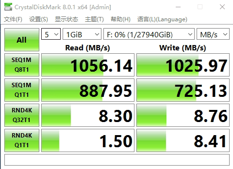 将9块SATA硬盘做成存储池后,在看一下读写速度。