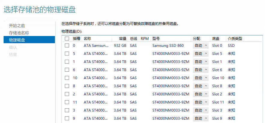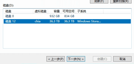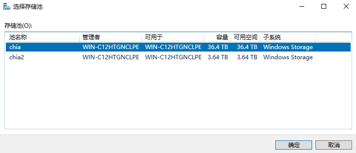 填写所需创建的存储池名称,例如chia,然后下一步,选择想要加入存储池的磁盘。