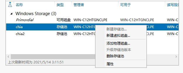 选择已经创建好的存储池,点击右键,新建虚拟磁盘。