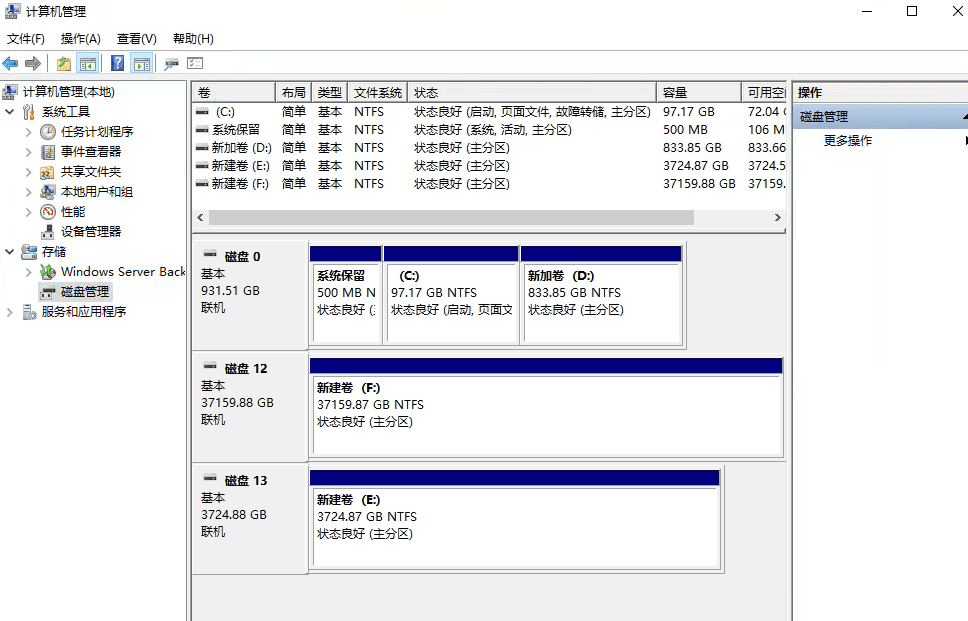 点击磁盘选项,右侧状态栏中会显示出所有的硬盘。
