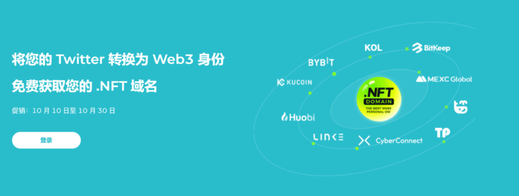 免费申请 NFT域名 啦!2022年10月30日前,每个 Twitter 帐户都有资格获得一个 NFT域名 。你只需要在 Twitter 中有50个关注者,即可获得 Twitter 帐号同名的 NFT域名 。先到先得,赶快免费申请属于你专有的 Web3 身份吧!