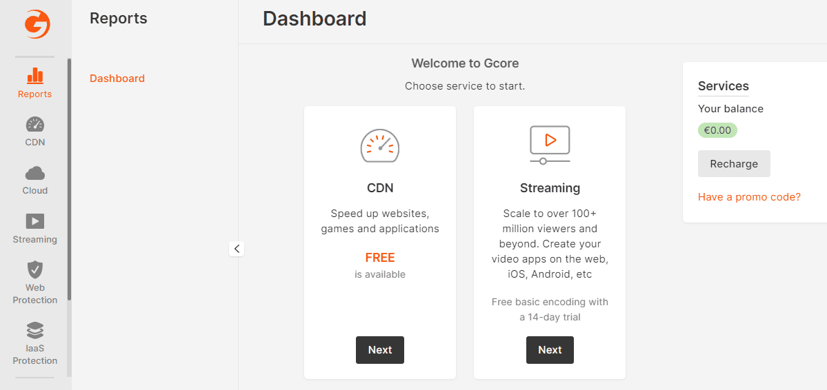 Gcore CND 注册地址:https://cdn.gcore.com/