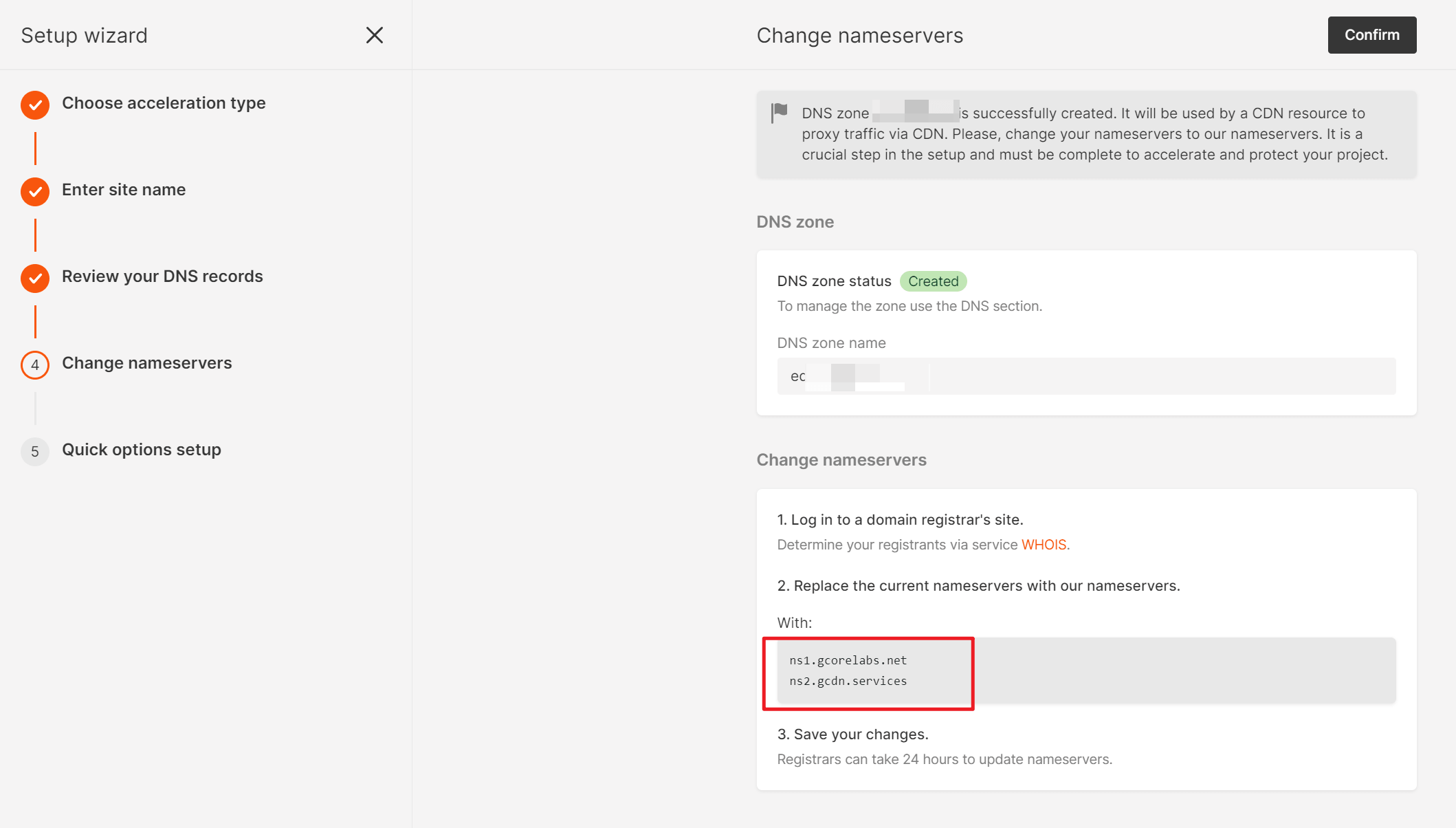 因为 Gcore 的 CDN 需要更改 Nameservers,所以你需要有一个域名然后专用 CDN。