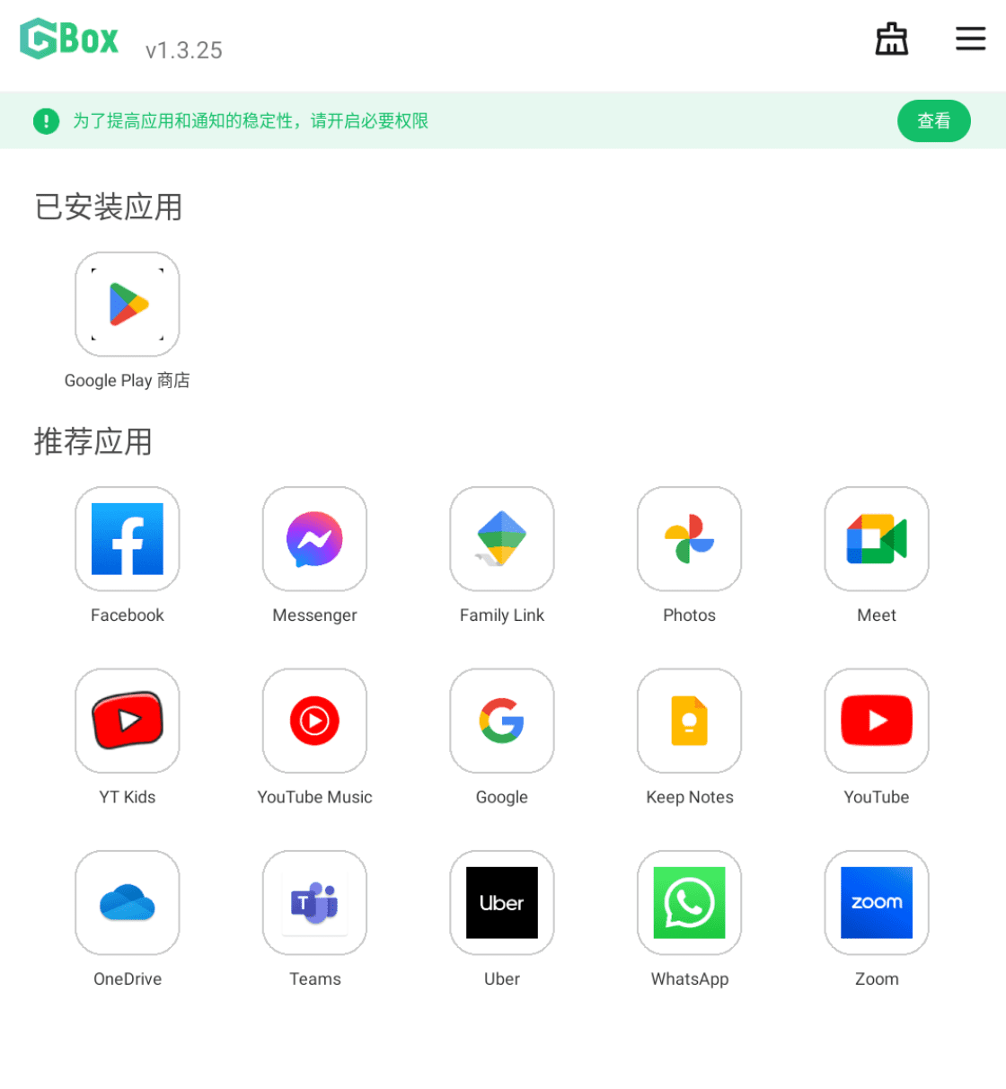 GBox 默认是已经安装Google Play 商店的,可以直接在谷歌商店中下载你想安装的应用,在GBox中有一些推荐的应用。
