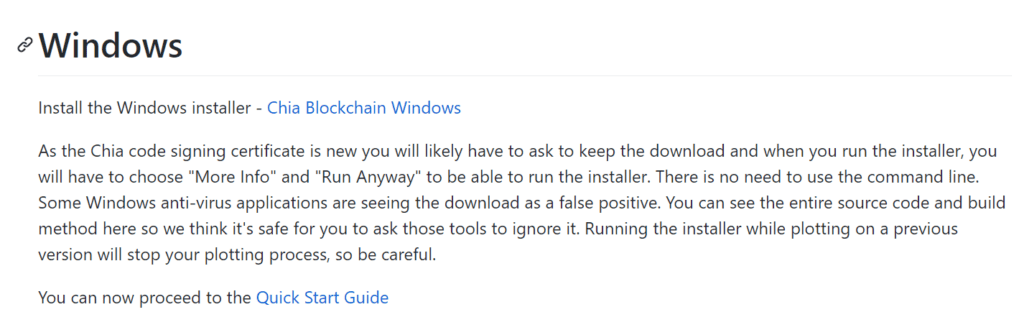 Chia的github地址:https : //github.com/Chia-Network/chia-blockchain/wiki/INSTALL#Windows