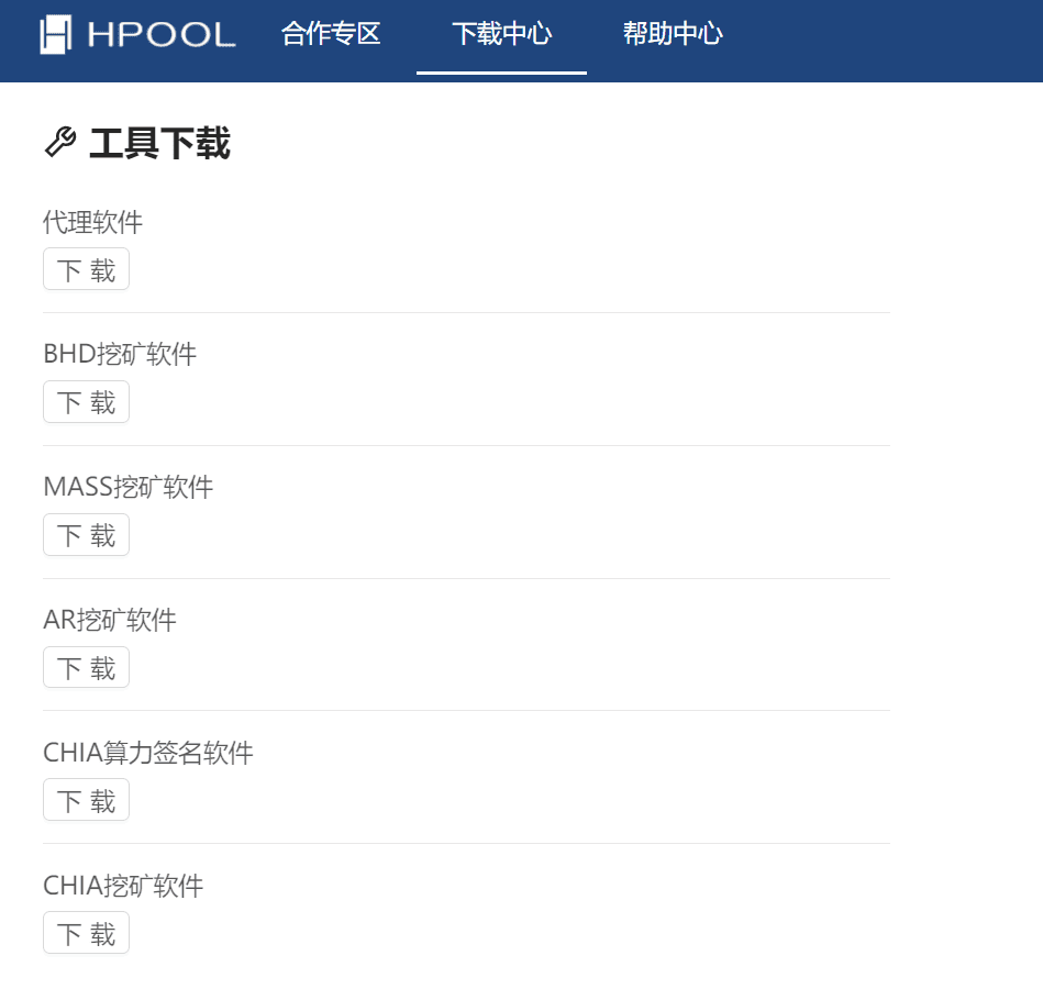 访问Hpool官网,在下载中心下载CHIA算力签名软件。