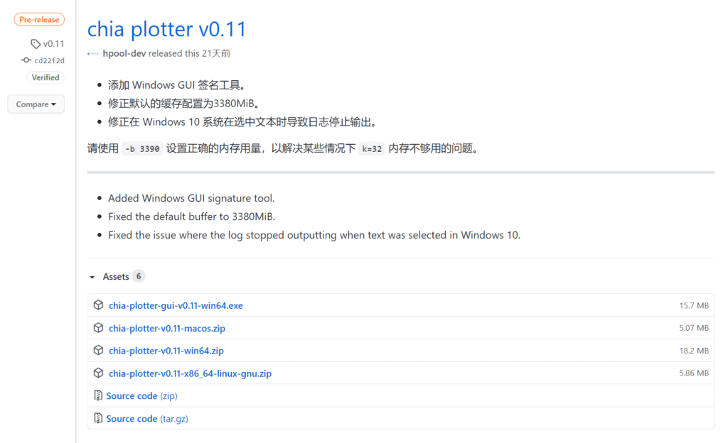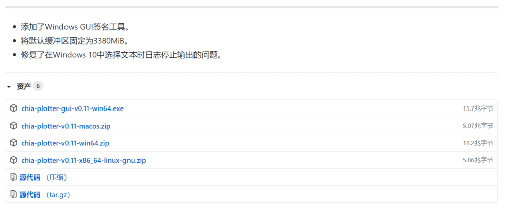 也可以直接访问签名软件github项目下载地址:https://github.com/hpool-dev/chia-plotter/releases