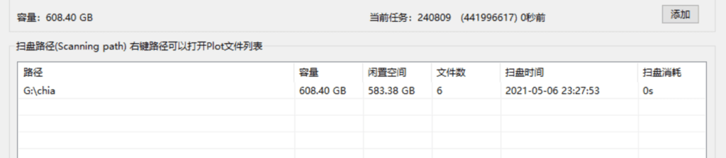 PLOT文件存放目录添加完成后,就自动进入挖矿模式了。
