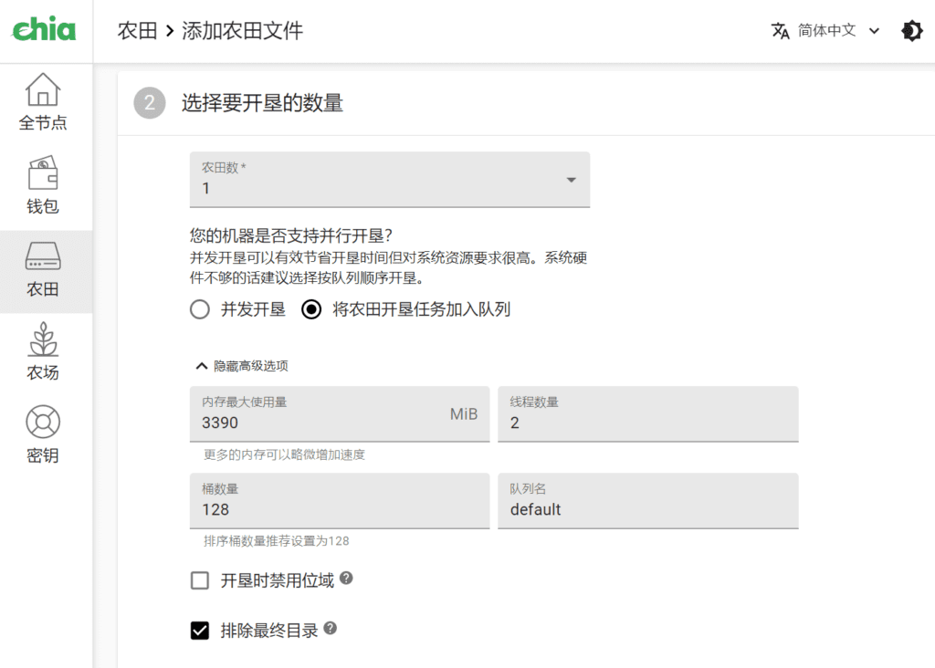 排除最终目录:当此文件在完成P盘后不会加入钱包的挖矿列表内,在离开矿池挖矿后,设置好农田存放目录后在钱包中仍可正常solo挖矿。