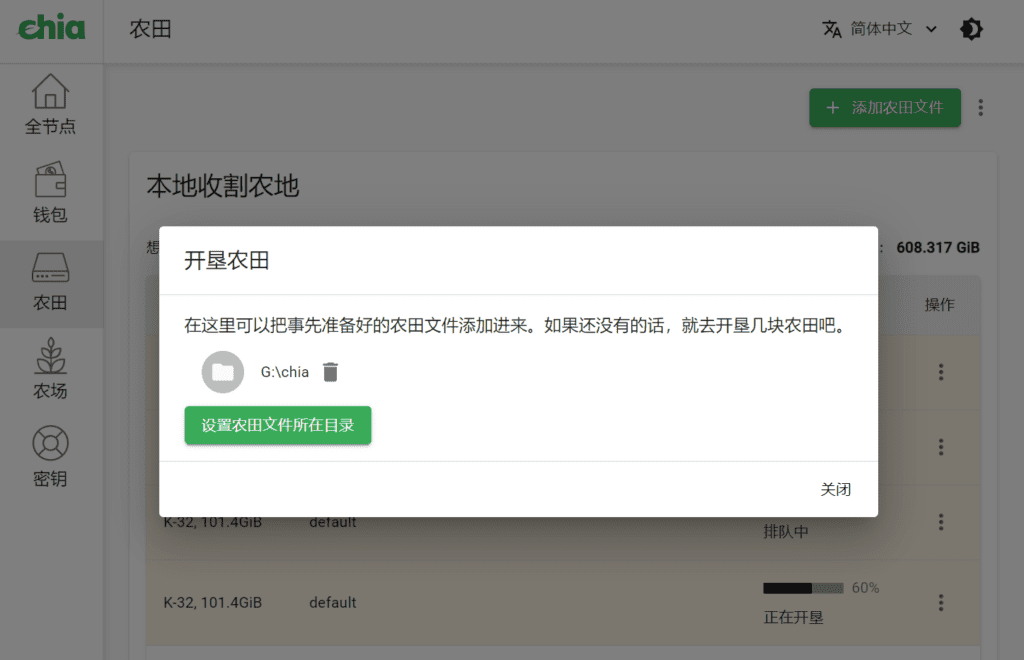 如果同时使用钱包与矿池P盘工具P盘的时候,建议将两个最终文件存放路径区分开。使用矿池的挖矿工具挖矿时,需要在Chia全节点钱包里面删除掉农田文件所在目录。