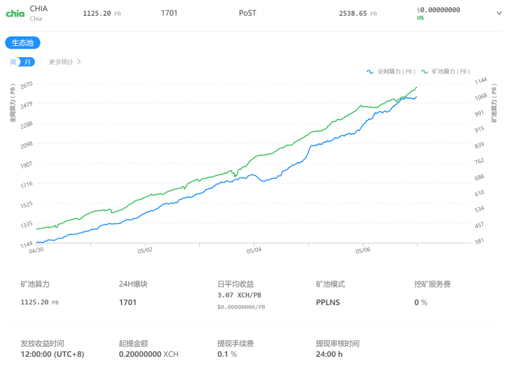 总之,现阶段接入矿池,存在一定风险,大家可以自己衡量。后期矿池机制成熟再入也不迟,现在全网算力这么大,所谓头矿期早就过了,挖矿是个持久活儿,另外Chia官方即将推出自己的矿池,也可以等等官方的矿池。