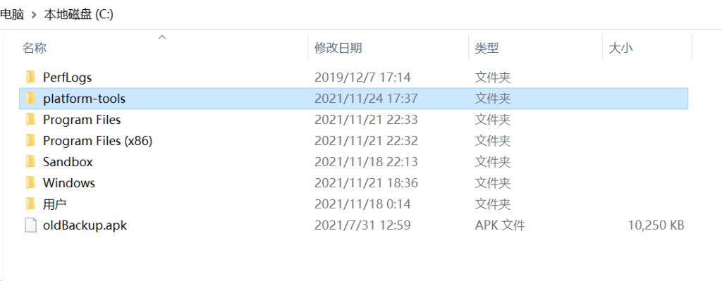 首先,先下载platform-tools电脑端工具,下载完毕后,将platform-tools解压缩到C盘目录下。然后将目录内的oldBackup. 文件,复制到C盘下。