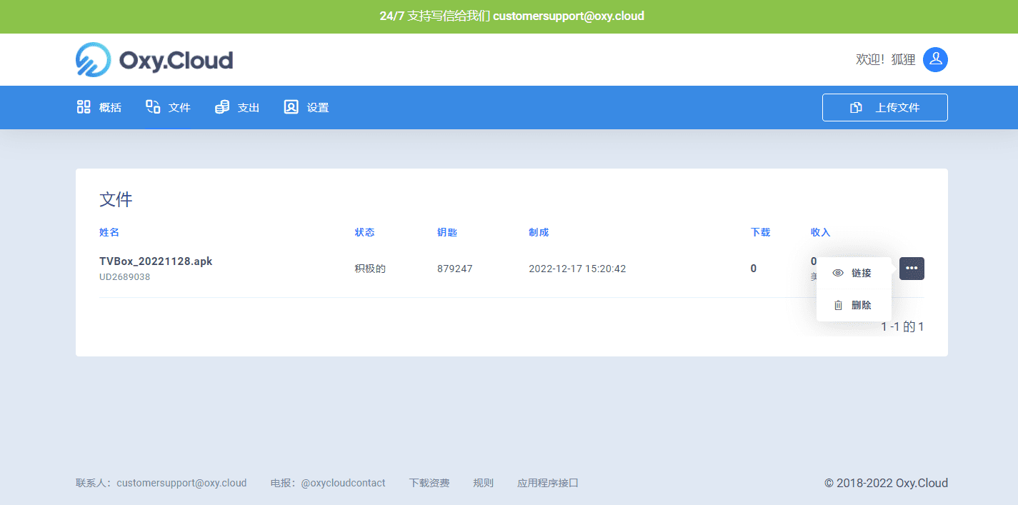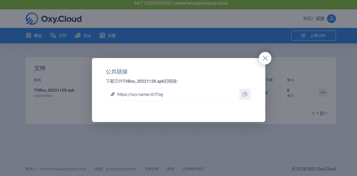 分享下载链接赚钱 oxy.cloud 免费云存储平台