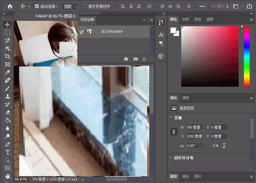 安装完毕后,重新打开Photoshop就可以编辑编辑与导出保存WebP图片了。